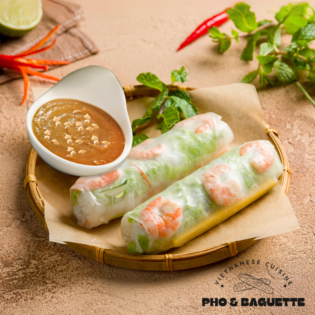 Pork & shrimp, bean sprout, lettuce, rice noodles wrapped in rice paper & serve with homemade peanuts sauce.